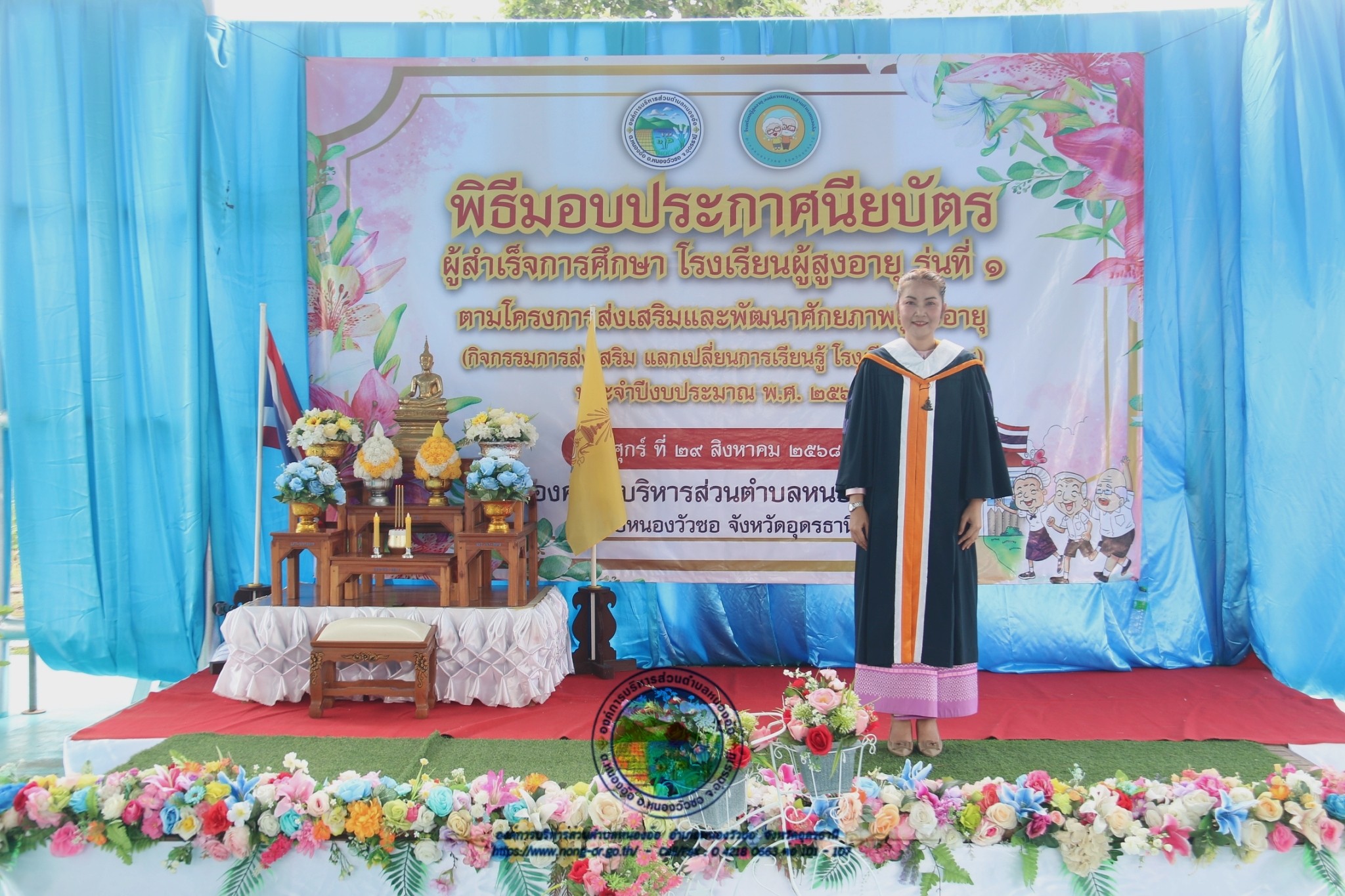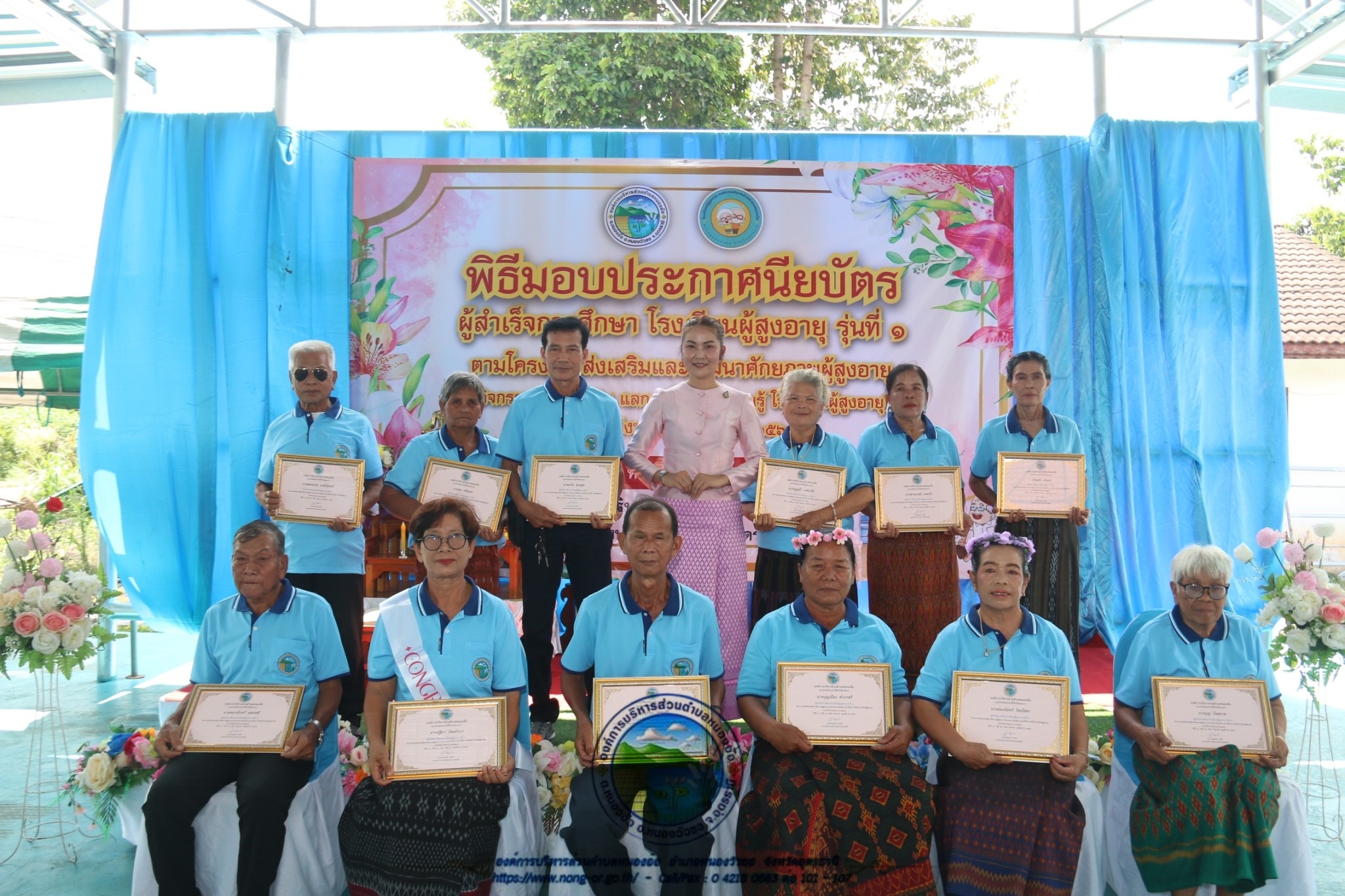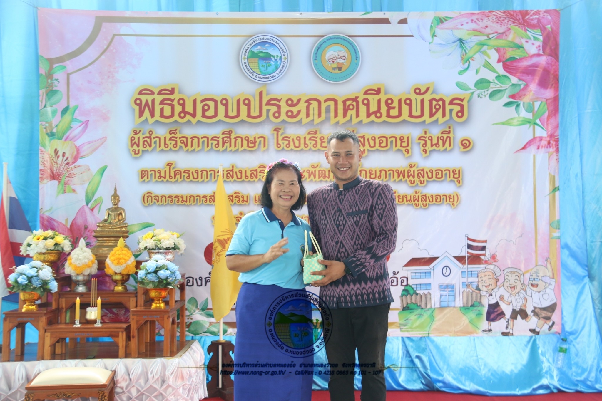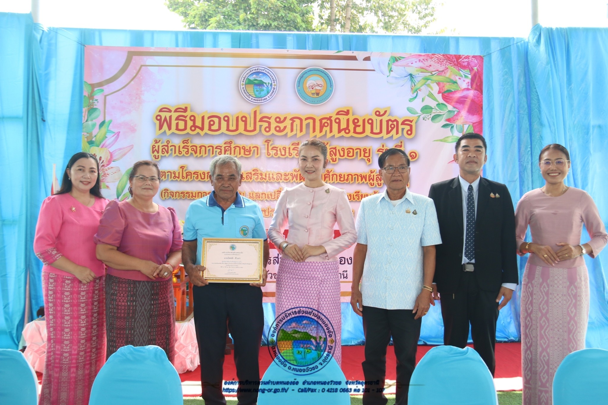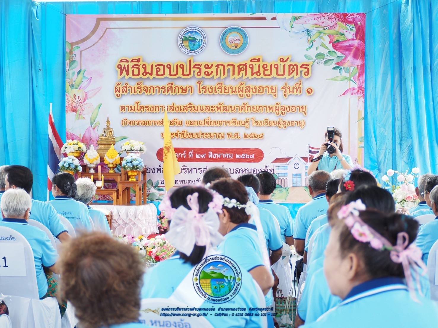 นางสาวสุมาลี พานิช นายกองค์การบริหารส่วนตำบลหนองอ้อ เป็นประธานในพิธี พร้อมด้วย คณะบริหาร, คณะสภาฯ, ปลัด, รองปลัด, หัวหน้าสำนัก, ผู้อำนวยการกองคลัง, ผู้อำนวยการกองช่าง, ผู้อำนวยการกองการศึกษา, เจ้าหน้าที่และพนักงานองค์การบริหารส่วนตำบลหนองอ้อ รวมไปถึง ผู้นำชุมชนผู้นำหมู่บ้าน และผู้สูงอายุในเขตตำบลหนองอ้อ เข้าร่วมพิธีรับใบประกาศนียบัตรผู้สำเร็จการศึกษาโรงเรียนผู้สูงอายุ ตามโครงการส่งเสริมการพัฒนาศักยภาพผู้สูงอายุ (กิจกรรมการส่งเสริมแลกเปลี่ยนและการเรียนรู้โรงเรียนผู้สูงอายุ) ประจำปีงบประมาณ พ.ศ ๒๕๖๘
