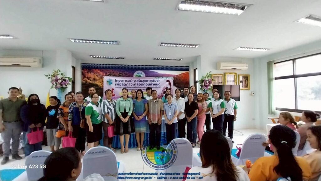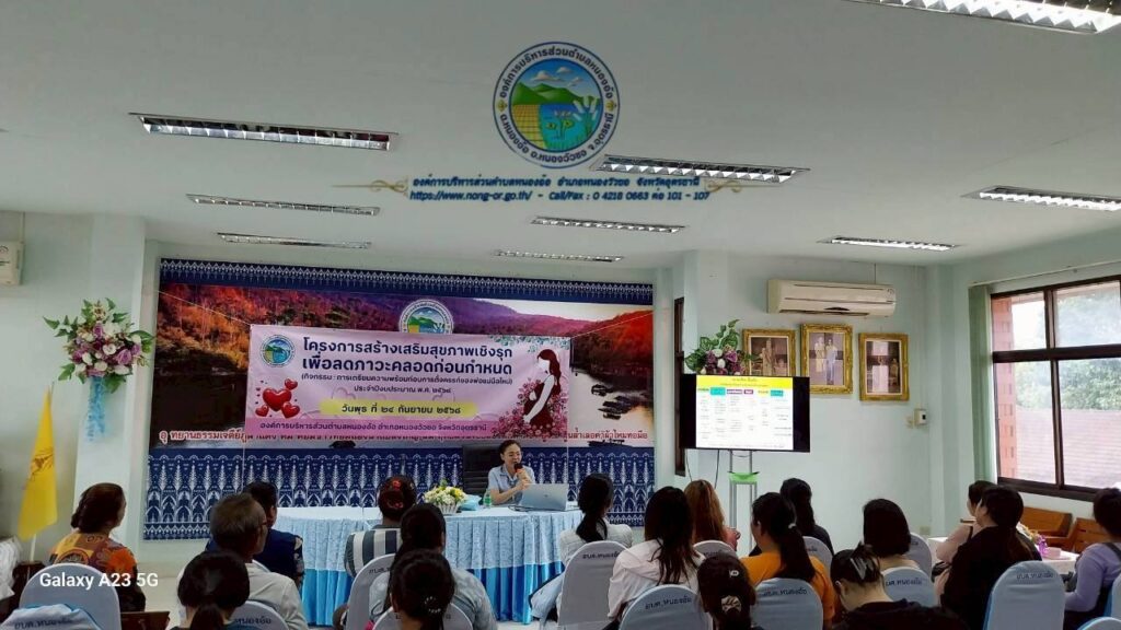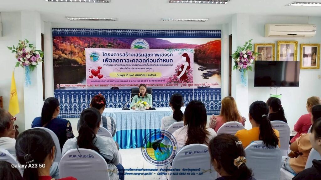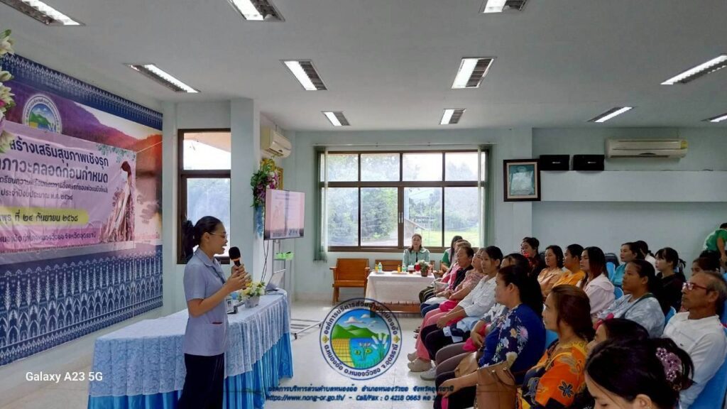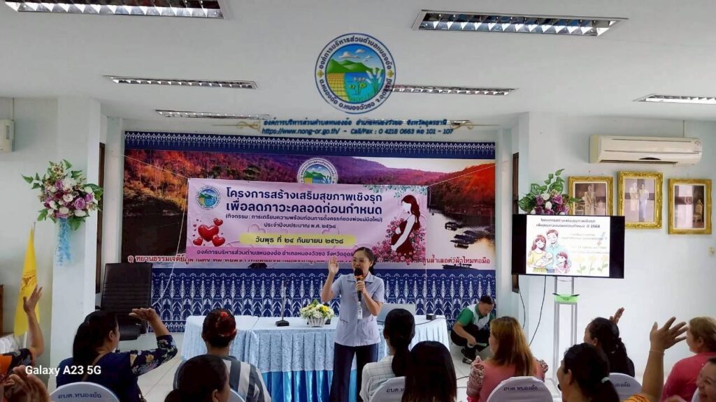 นางสาวสุมาลี พานิช นายกองค์การบริหารส่วนตำบลหนองอ้อ เป็นประธานในพิธี พร้อมด้วยคณะผู้บริหาร, คณะสภาฯ, ปลัด, รองปลัด, หัวหน้าสำนัก, ผู้อำนวยการกองช่าง, ผู้อำนวยการกองคลัง, ผู้อำนวยการกองการศึกษา, เจ้าหน้าที่และพนักงานองค์การบริหารส่วนตำบลหนองอ้อ รวมไปถึงหญิงตั้งครรภ์และผู้ดูแลฯ ภายในเขตพื้นที่องค์การบริหารส่วนตำบลหนองอ้อ เข้าร่วมโครงการสร้างเสริมสุขภาพเชิงรุก เพื่อลดภาวะคลอดก่อนกำหนด (กิจกรรม : การเตรียมความพร้อมก่อนการตั้งครรภ์ของพ่อแม่มือใหม่) ประจำปีงบประมาณ พ.ศ. ๒๕๖๘
